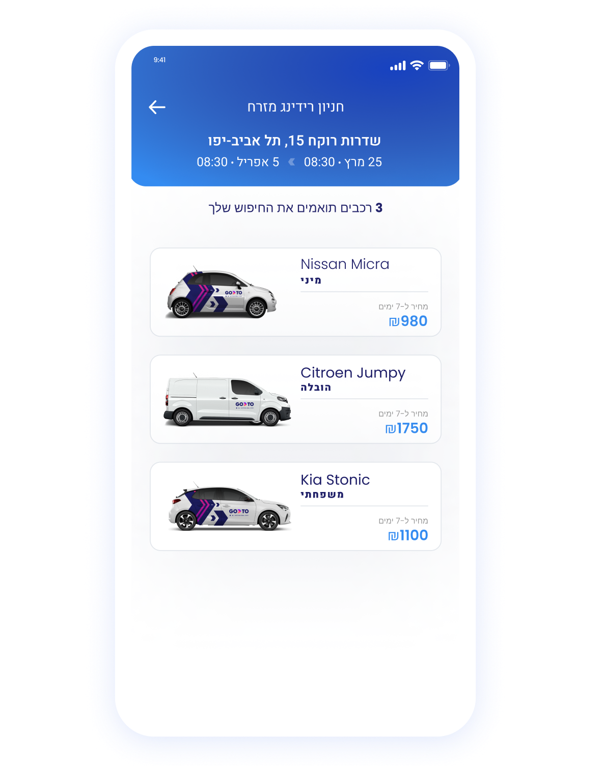 GoTo השכרת רכב לימים