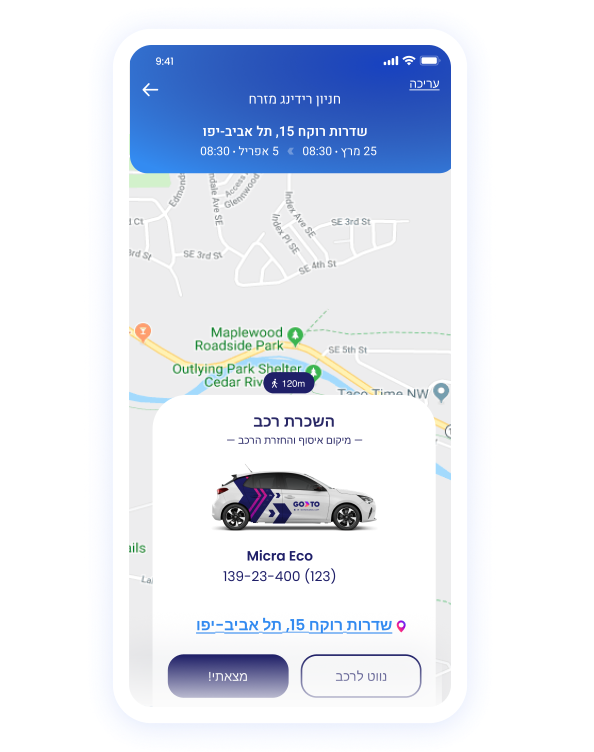 השירות פועל במגוון נקודות איסוף ברחבי הארץ, יש לבחור באייקון “השכרת הרכב” כדי לגלות את המיקומים מהם ניתן לקחת ולהחזיר את הרכב.