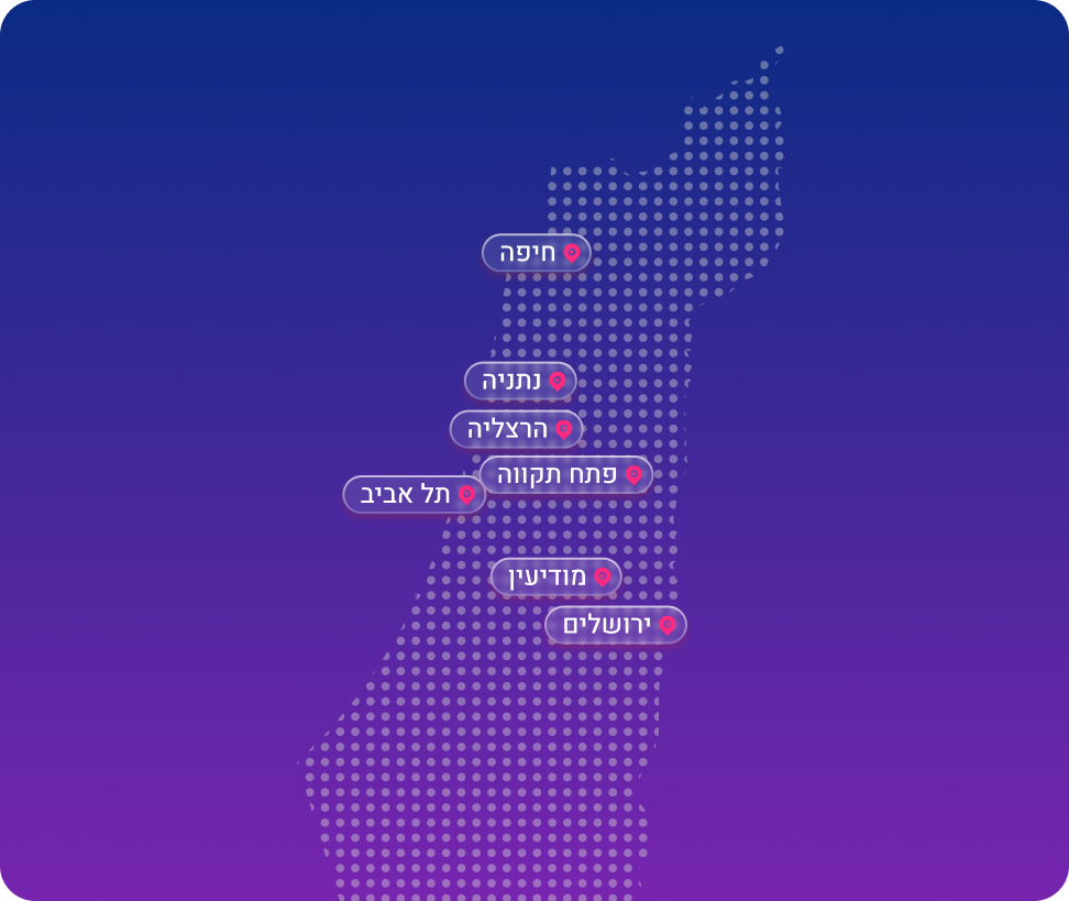 השירות פועל במגוון ערים גדולות ברחבי הארץ ואנחנו תמיד בדרך להרחיב את השירות לערים נוספות. הרכבים שלנו מחכים בחניות ייעודיות שמורות ברחבי העיר, כך שתוכלו לאסוף ולהחזיר את הרכב לאותה חניה הקרובה אליכם.