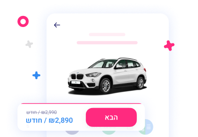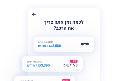 לקחת רכב לתקופה זמנית מבלי להתחייב מראש ל-3 שנים, בלי מקדמה, פיקדון או הלוואה ובתשלום חודשי קבוע ומשתלם שכולל את כל הוצאות האחזקה- רישוי, ביטוח, טיפולים, טסט ושירות 24/7.