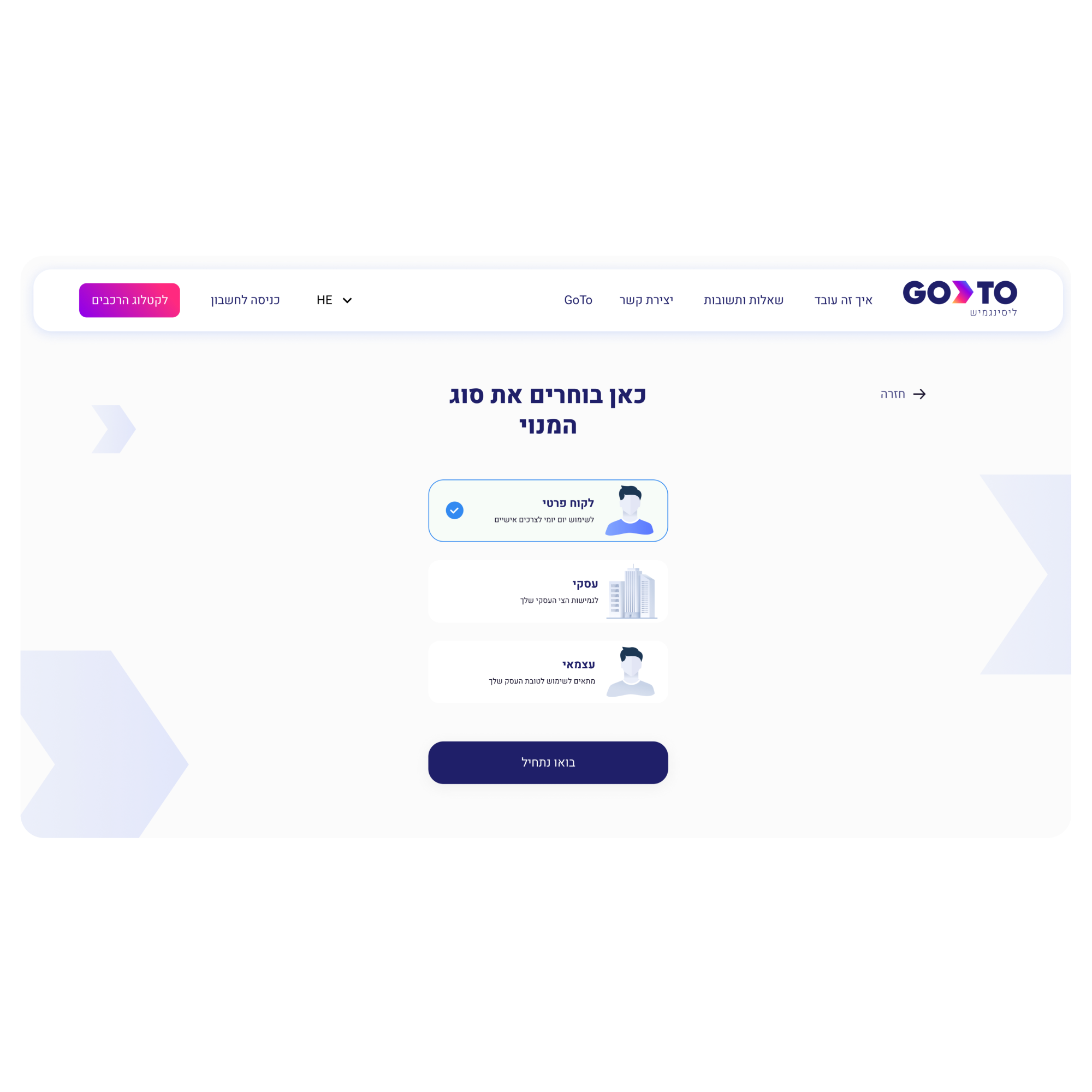 השוו בין ליסינגמיש של GoTo לפתרונות רכב מסורתיים ותבינו למה אנחנו הבחירה החכמה והמנצחת לעסקים שמבינים עניין.
